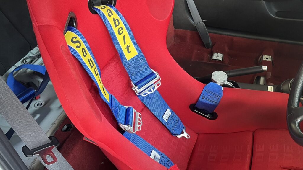 これで身体をしっかりシートに固定することによって、どんなGがかかろうとも、腕と脚はフリーに動かせるので、正確なステアリング操作やペダル操作が可能になります。ここは普通の3点シートベルトではお話にならないレベルで差があるので、バケットシートとセットで導入必須なアイテムです。